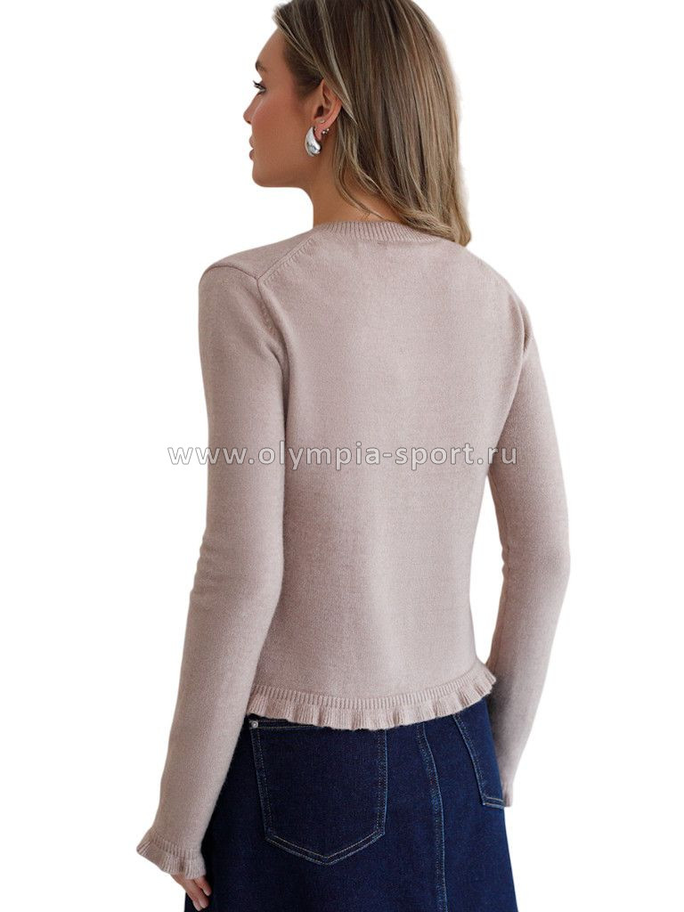 Кардиган выполнен из мягкой меланжевой пряжи с Романтичности прямому силуэту добавляют мягкие воланы по линии пуговиц, на манжетах и краю изделия. Застежка на пуговицы из натурального перламутра. Изделие очень приятное к телу, совершенно не колется и отлично сохраняет тепло. Сочетается в костюме с брюками D38.013, D38.012 и юбкой D36.016