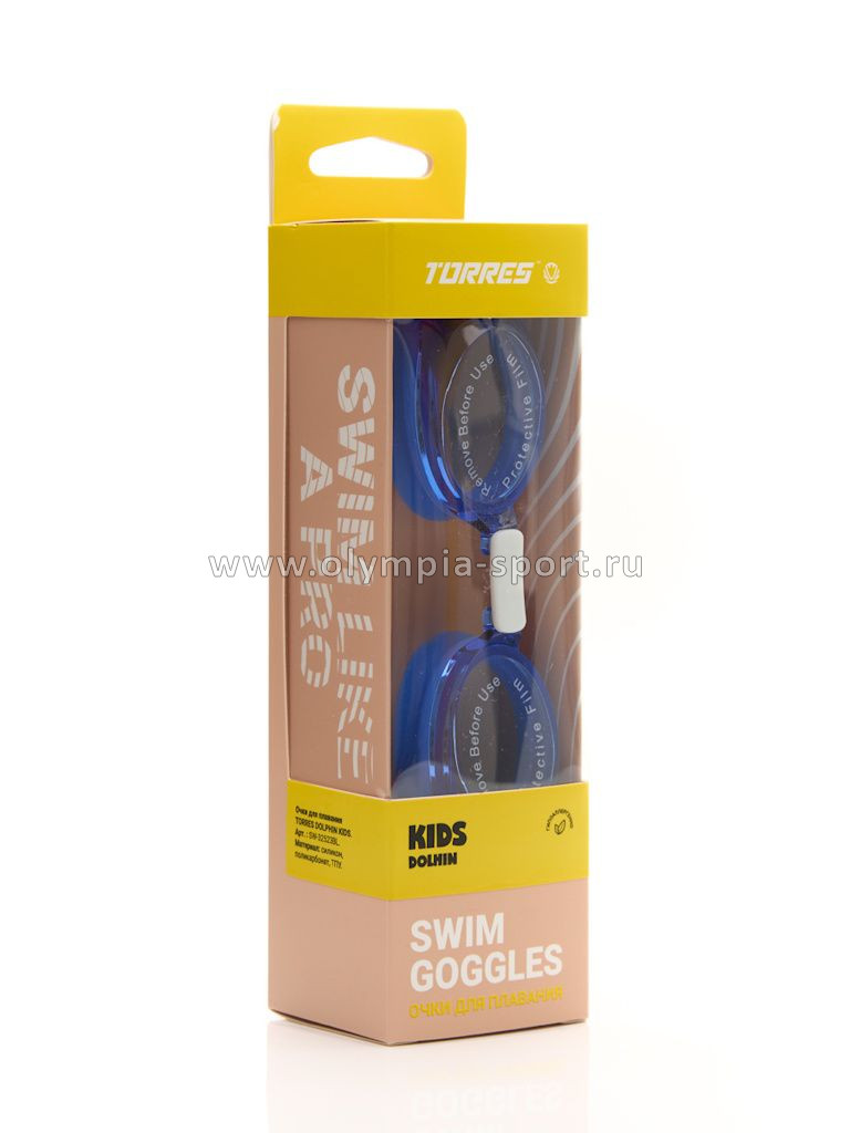 Очки для плавания детские TORRES Dolphin Kids, голубые линзы, синяя оправа, 2-5лет